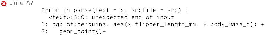 ggplot(penguins, aes(x=flipper_length_mm, y=bill_depth_mm) +