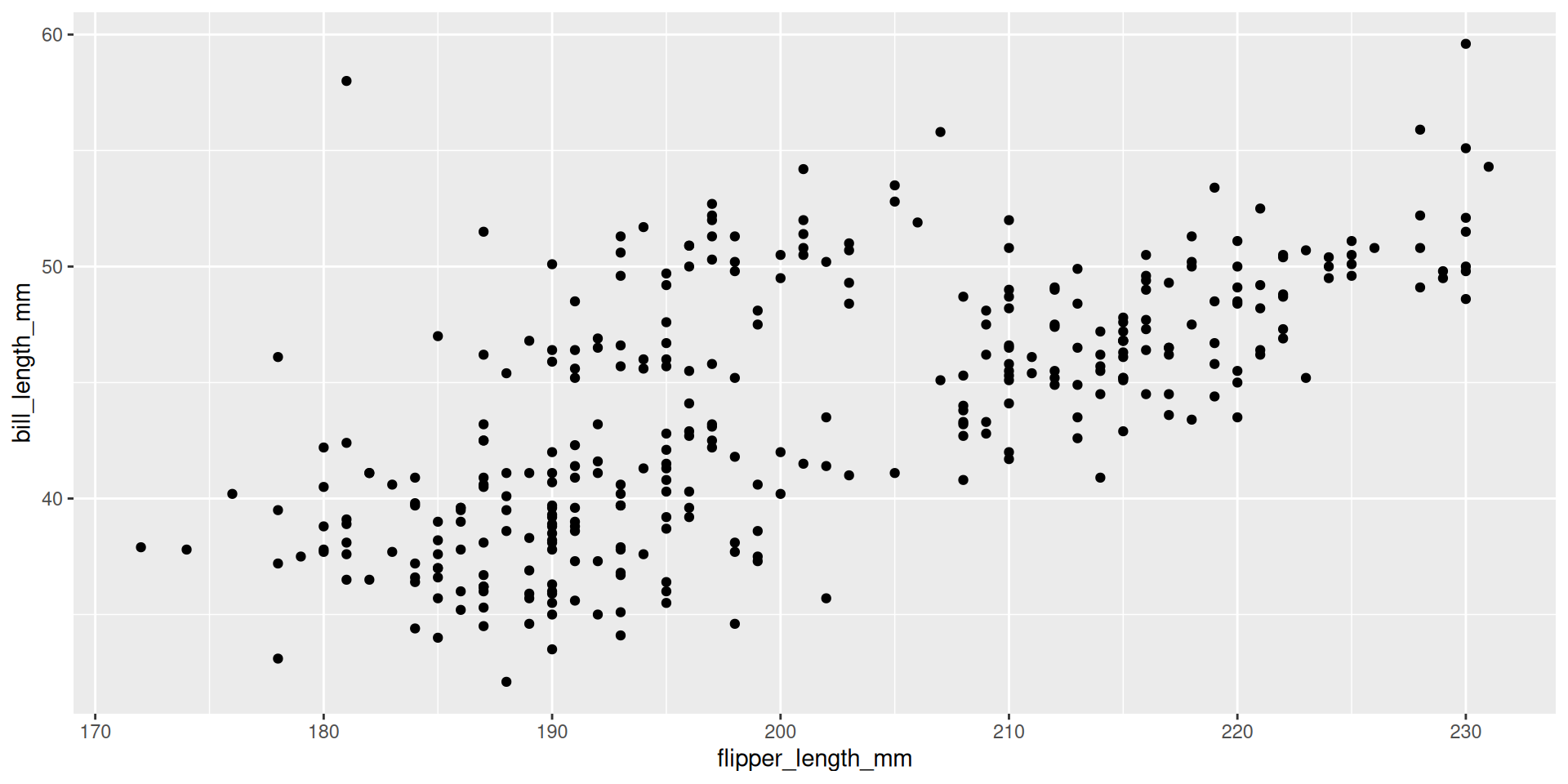 ggplot(penguins, aes(x=flipper_length_mm, y=bill_length_mm)) +