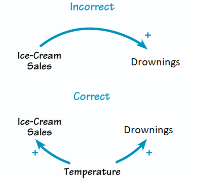 Causation: any change in the value of one variable will cause a change in the value of another variable, which means one variable makes the other happen.